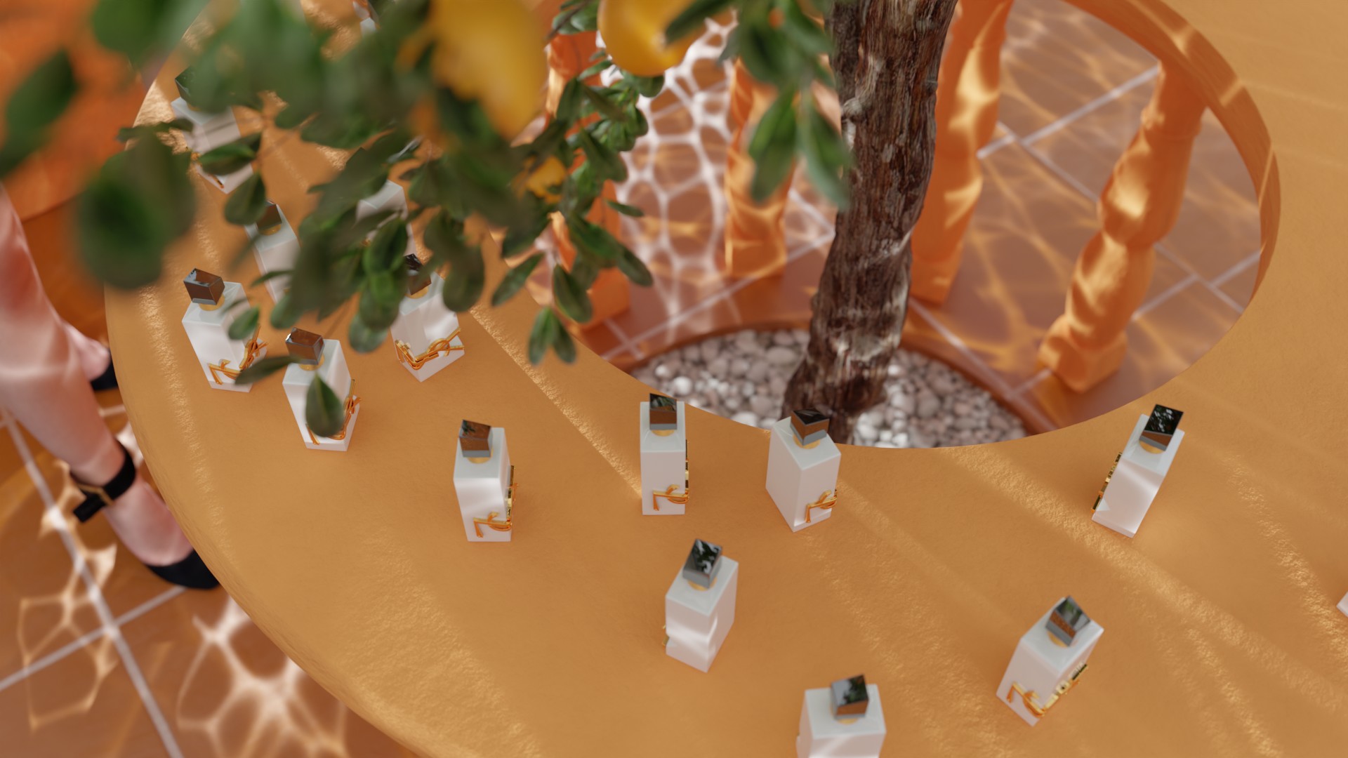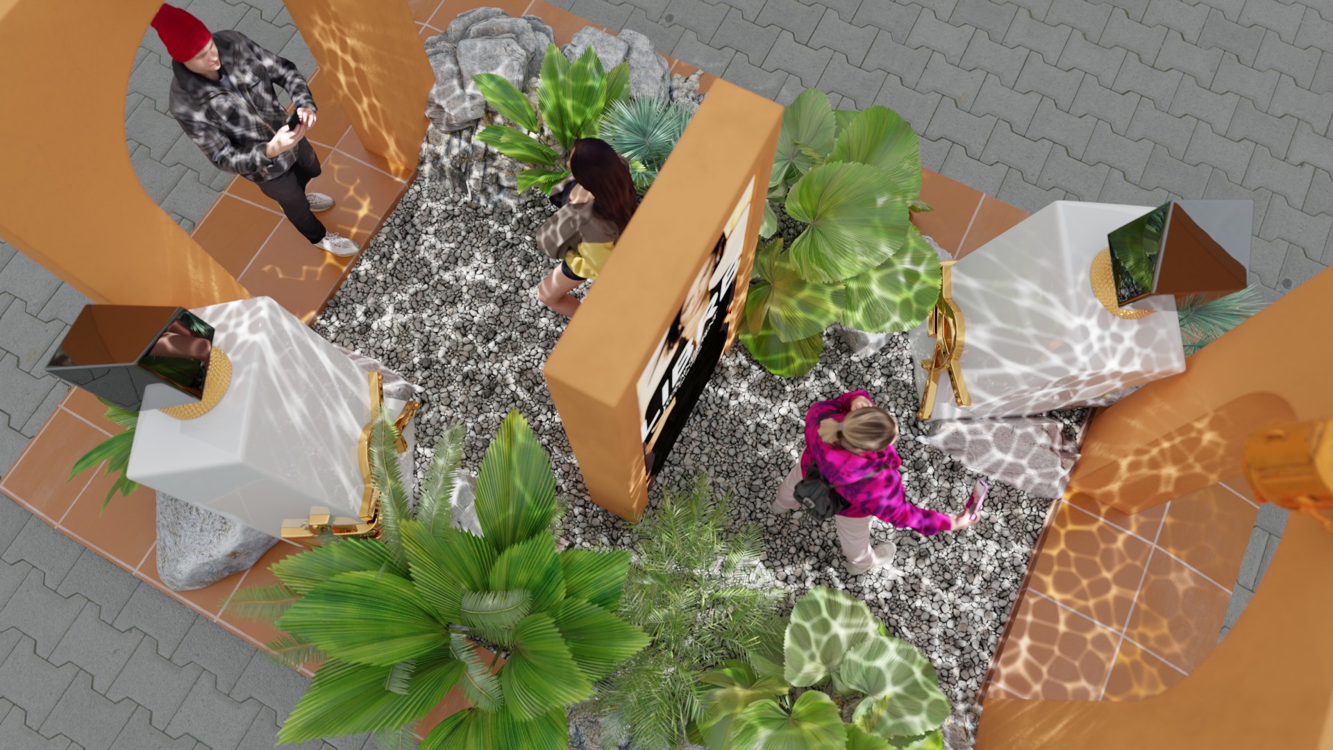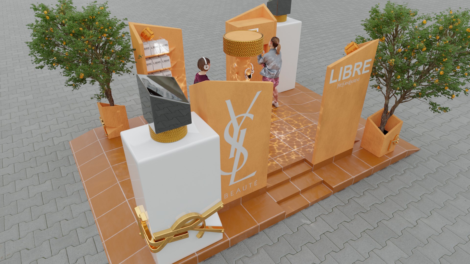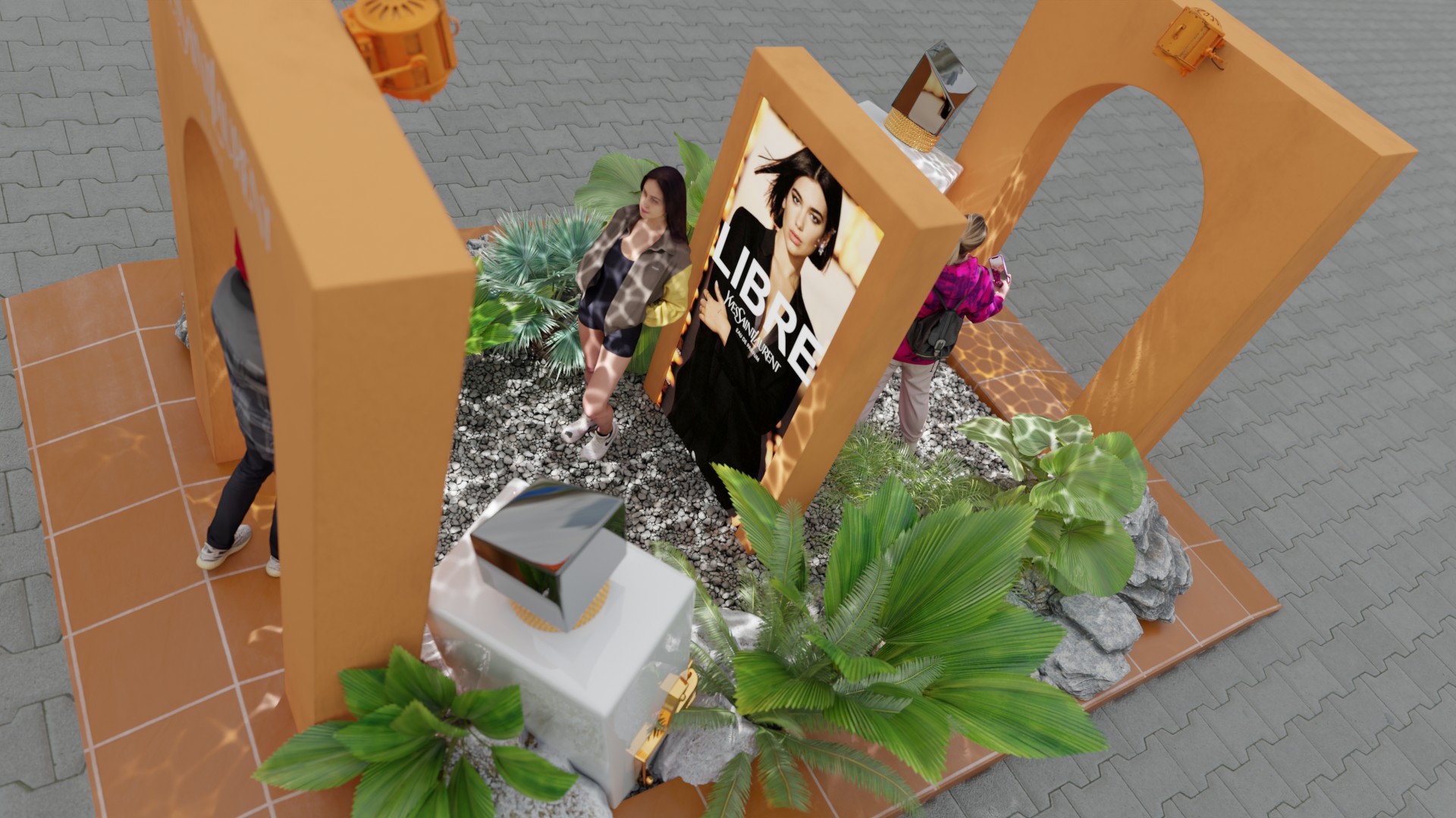 Activation at Wembley Stadium during Dua Lipa's concert, celebrating the collaboration between YSLÂ and Dua Lipa for the new perfume Libre. The activation features experiential areas, photo ops and scented mist towers.